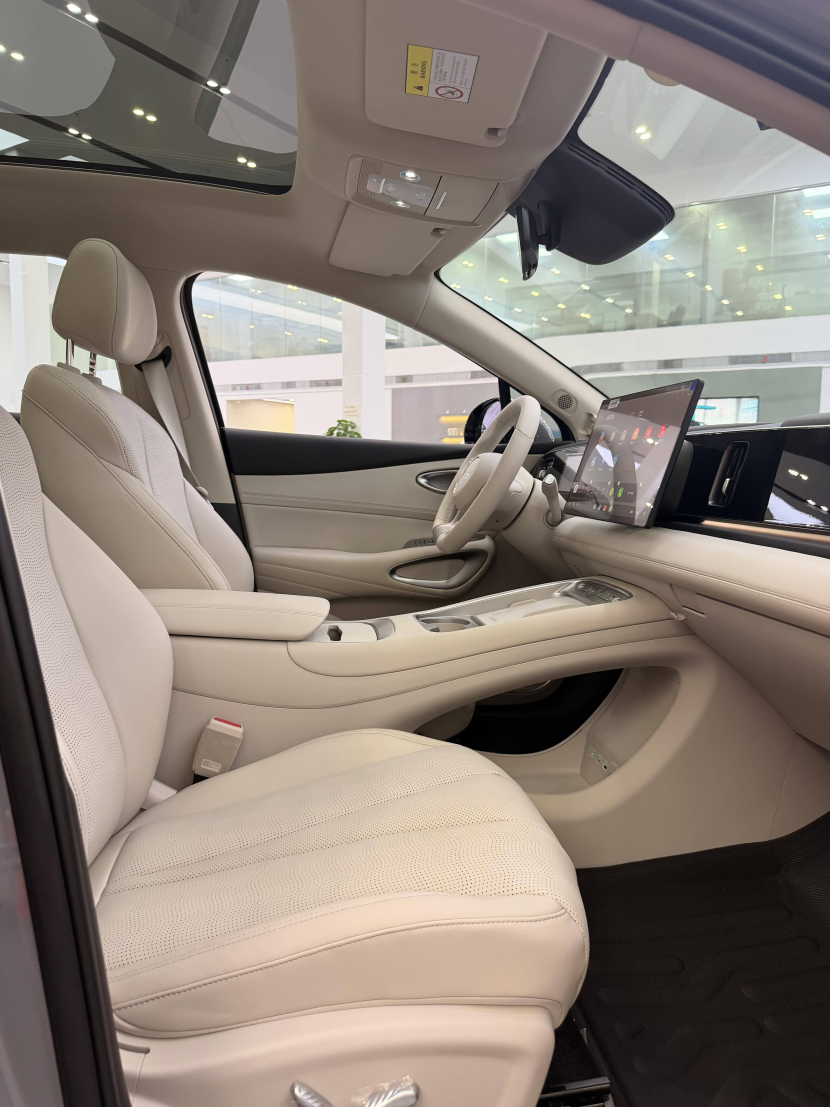 其余配置可参考海狮05EV,提供前排座椅电动调节/通风/加热、主副驾LED美妆镜、沉浸式多色氛围灯、全景天幕+电动遮阳帘、8扬音响系统、电动尾门、车载ETC等配置。而后排空调出风口/充电接口,以及带杯架的中央扶手也全都有,座椅也支持4:6比例放倒,能进一步提升实用空间。